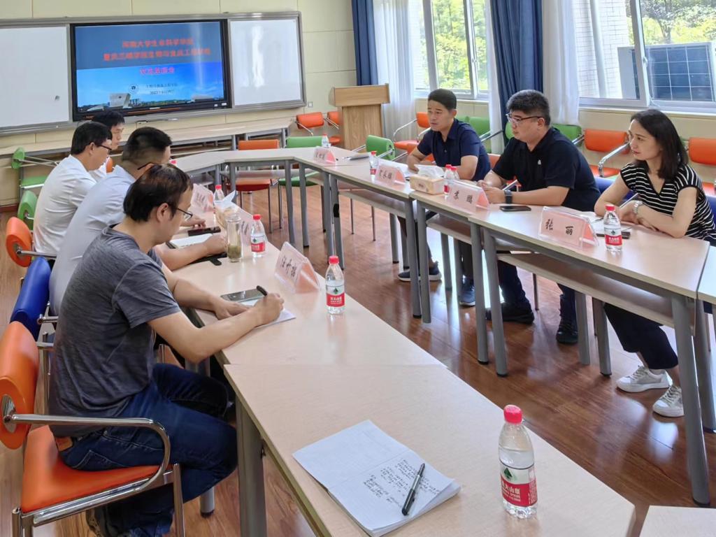 8月11日上午,重庆三峡学院生物与食品工程学院召开座谈会,学院党委书记骆孟鑫、生物技术系主任、必赢76net线路官网2001级校友戚文华教授及学院领导班子参加会议。骆孟鑫介绍了重庆三峡学院及生物与食品工程学院的基本情况,结合地方实际需求、经济特色、发展特点设立助力乡村振兴的帮扶项目,制定激励机制、组建服务地方专家库、选派科技特派员,推动社会服务工作落地做实。戚文华作为科技特派员担任罗田镇枫香村驻村第一书记,详细介绍了驻村以来取得的工作成绩,并感谢母校对自身的培养和支持。苏鹏介绍了必赢76net线路官网及必赢76net线路官网的基本情况,重点讲到必赢76net线路官网成功获批2023年国家级专家服务基地,通过此次调研学习成功经验,发挥专家作用、助力乡村振兴、提高社会服务能力,为生物学一流学科建设提供支撑。他希望通过校友资源在科学研究、人才引进、社会服务等方面加强沟通,共同进步。