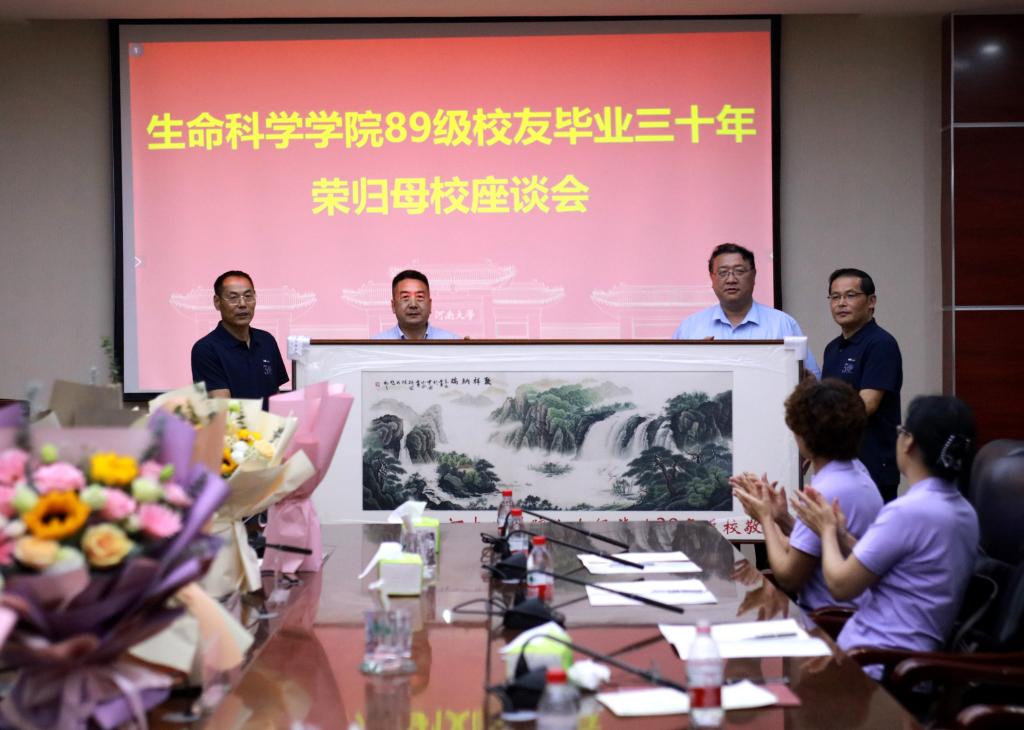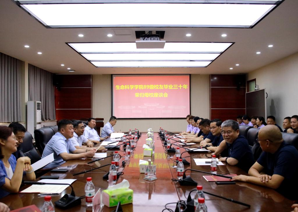 7月21日下午,必赢76net线路官网生物系89级校友毕业30年返校座谈会在学院B201会议室举行。必赢76net线路官网原校长宋纯鹏,89级辅导员、河南农业大学副校长尚富德,必赢76net线路官网副校长、必赢76net线路官网院长张立新,必赢76net线路官网副校长苗雨晨,开封市政协副主席苗琛,学院党委书记吴建伟,执行院长王刚及教师代表参加座谈会。会议由89级毕业生、棉花生物育种与综合利用全国重点实验室/省部共建作物逆境适应与改良国家重点实验室常务副主任安国勇主持。