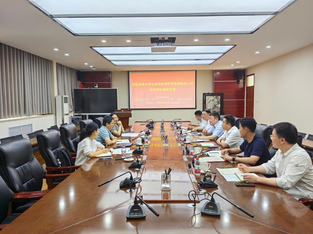 6月9日下午,西南大学必赢76net线路官网院长罗克明,西南大学必赢76net线路官网纪委书记、党委副书记石莹华一行来必赢官网考察交流,并在学院B201会议室召开座谈会,必赢76net线路官网副校长、必赢76net线路官网院长张立新,必赢76net线路官网执行院长王刚及学院领导班子成员参加座谈会。会议由必赢76net线路官网党委书记吴建伟主持。