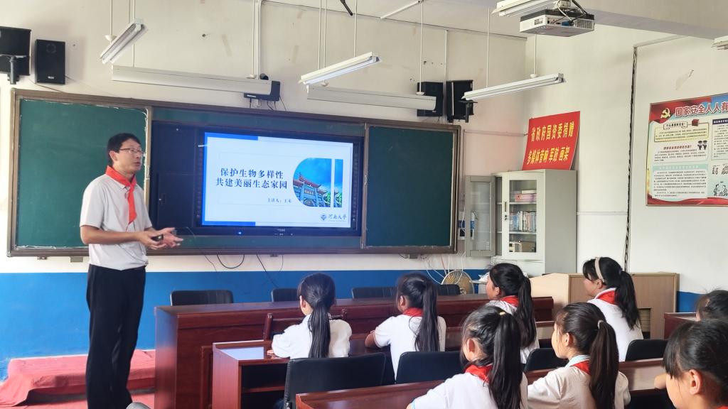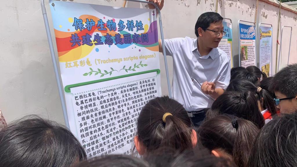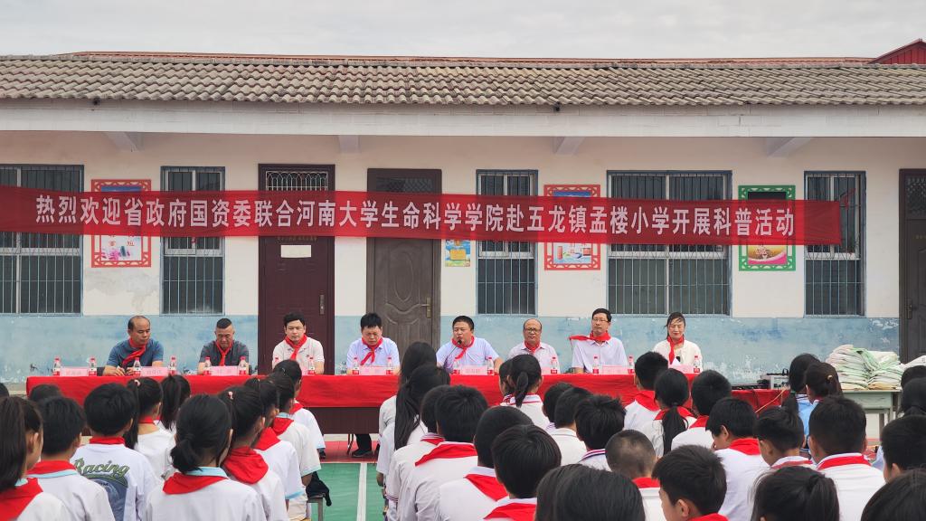 “全国科技活动周”和“全国科技工作者日”之际,为增强青少年对生物多样性的认识和保护意识,6月2日,受河南省政府国资委邀请,必赢76net线路官网赴上蔡县五龙镇孟楼小学开展“走进多样的生命,体验多彩的世界”主题科普活动。学院副院长赵海鹏,教师张海燕教授,王来博士,王少伟博士以及春桐学社成员;上蔡县县委常委、五龙镇党委书记乔鹏,省政府国资委驻孟楼村第一书记边涛,上蔡县五龙镇孟楼村支部书记刘涛和上蔡县五龙镇孟楼村小学校长徐宝庆等同志出席。