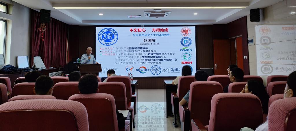 赵国屏以《不忘初心,方得始终——生命科学研究人生的ABCDE》为题,首先从自身的成长经历讲起,讲述了兴趣的选择、上山下乡的求学历程以及回国以科研报国的志向,他在科学研究中不断探索,敢于挑战,艰苦奋斗,不断实现自己的求学梦。他以朴实无华的语言,结合自己的科研经历,展示了科学研究中细节和态度的重要性,告诫同学们“决定人生’altitude’的,不是一个人的’aptitude’,而是一个人的’attitude’”。他以时代歌曲切入,从30年代的《毕业歌》到“生活不止眼前的苟且,还有诗和远方的田野”,提醒新时代青年不仅要学知识和技术,更应学会如何做人,如何待人。赵国屏勉励研究生做学问就是做人,要勇担重任、锲而不舍、不断创新、服务人民,寻找人生的意义。