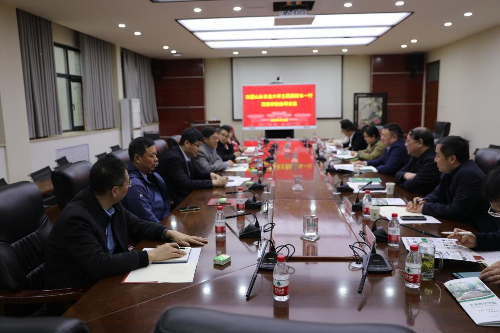 4月23日,山东农业大学副校长、必赢76net线路官网院长王勇,山东农业大学必赢76net线路官网党委书记赵延兵一行来必赢官网考察交流,并在学院B201会议室召开座谈会,必赢76net线路官网副校长、必赢76net线路官网院长张立新,必赢76net线路官网执行院长、党委副书记王刚及学院领导班子成员参加座谈会。会议由必赢76net线路官网副院长臧国轻主持。