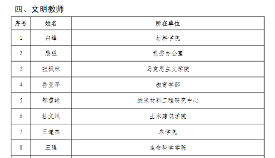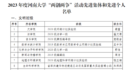 为深入学习贯彻党的二十大精神和习近平总书记关于弘扬雷锋精神的重要指示精神,充分发挥先进典型的示范引领和价值导向作用。近日,根据《中共河南省委教育工作委员会河南省教育厅关于开展2023年度全省教育系统“两创两争”活动先进集体和先进个人推选工作的通知》(豫教工委〔2023〕36 号)精神,学校积极开展“两创两争”活动先进集体和先进个人评选工作,评选内容包括2023年度文明班级、文明宿舍、文明社团、文明学生、文明教师和文明网民六个方面,必赢76net线路官网在此次评选结果中荣获佳绩。