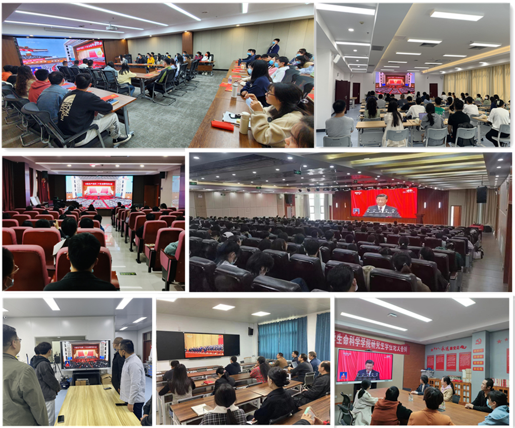 为确保组织有序高效,学院党委设置了9个分会场,安排党委委员、领导班子成员和全体支部书记在学院B201会议室,棉花生物学国家重点实验室师生党员在309会议室,作物逆境适应与改良国家重点实验室师生党员在101会议室,学院本科生、研究生党员及学生会、研究生会干部在圆楼报告厅,深圳学生党员在深圳研究生院会议室,生物工程系在C115会议室,植物科学与技术系在A111党建活动室,生物科学系和生物环境党支部在A502教室,基础实验中心和行政党支部在B301院史馆分别进行收看。