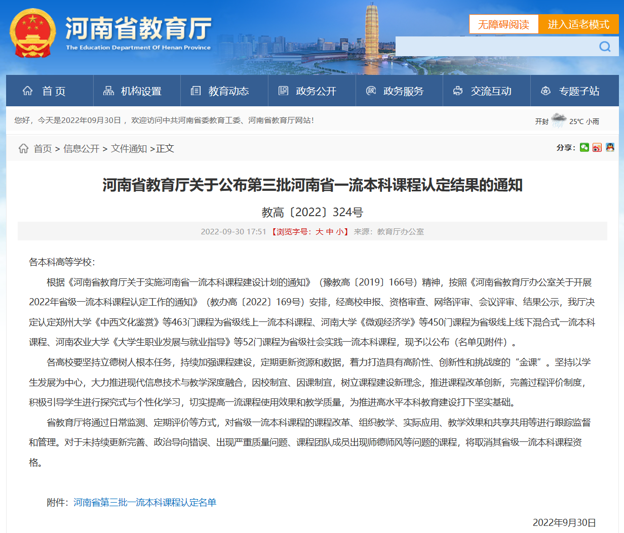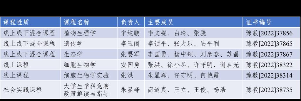近日,河南省教育厅下发《河南省教育厅关于公布第三批河南省一流本科课程认定结果的通知》(教高〔2022〕324号),必赢官网6门课程被认定为2022年省级一流本科课程。其中,宋纯鹏教授主讲的《植物生理学》、李玉阁副教授主讲的《遗传学》、张要军副教授主讲的《生态学》等3门课程被认定为线上线下混合式一流课程;安国勇教授主讲的《细胞生物学》、张洪副教授主讲的《细胞生物学实验》等2门课程被认定为线上一流课程;朱显峰教授主讲的《大学生学科竞赛政策解读与指导》被认定为社会实践一流课程。