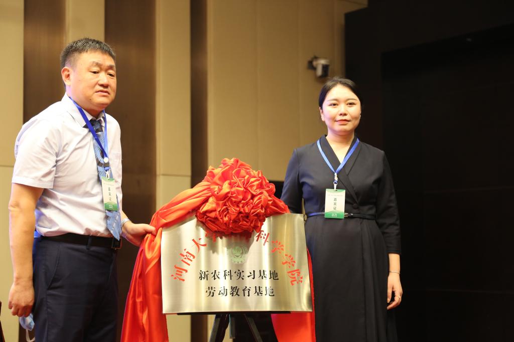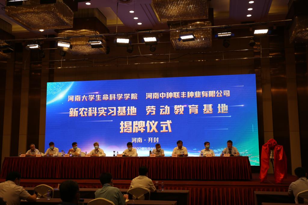 根据前期必赢官网与开封市农业农村局、河南中种联丰种业有限公司洽谈交流达成的意向,在出席开幕式的领导、专家、种业企业及区域内人员的共同见证下,张立新和河南中种联丰种业有限公司董事长刘丹丹共同为新农科实习基地、劳动教育基地揭牌。
