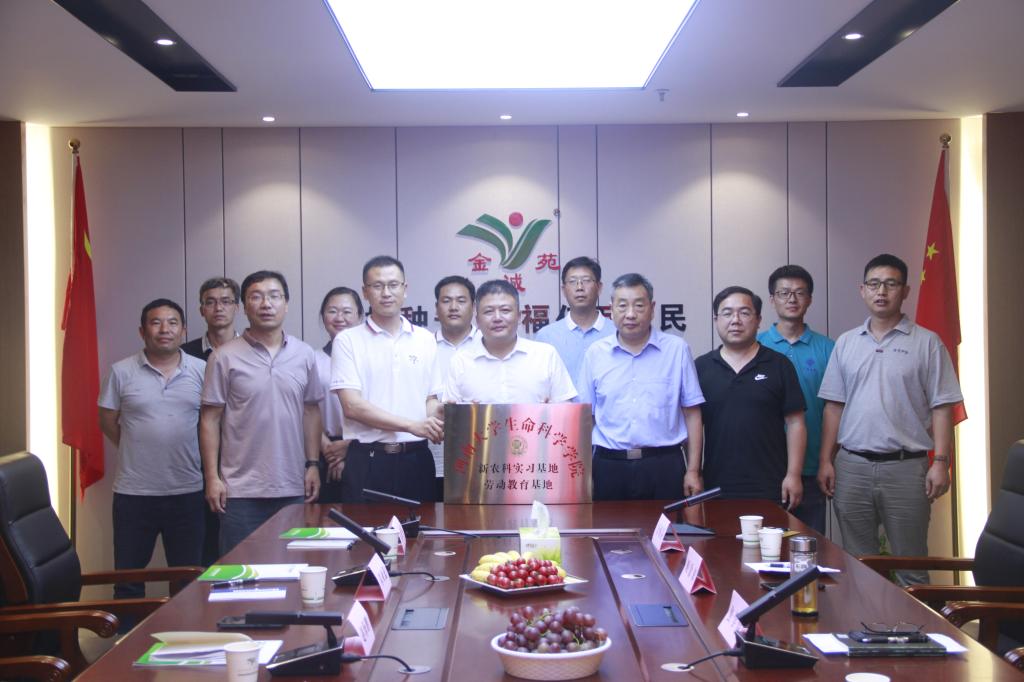 7月5日,必赢76net线路官网副院长赵海鹏、植物科学与技术系主任高安礼、副主任苏亚蕊、教务办公室负责人张要军以及教师代表许红星、黄世全等一行六人,到河南金苑种业股份有限公司调研考察,并为共建的新农科实习暨劳动教育基地揭牌。