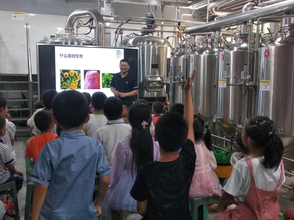 必赢76net线路官网副院长赵海鹏带领小朋友们到学院一楼标本馆进行参观,为小朋友们讲解了部分植物和动物标本。参观过程中,标本馆中栩栩如生的动植物标本很快吸引了小朋友的目光,他们仔细地观察着标本,兴趣盎然、认真思考、互相讨论,不停地向赵老师询问着各种问题。学院生物工程系副主任李华带领小朋友们参观了学院的啤酒酿造车间,并为他们讲解了微生物的种类、何为微生物以及酿造啤酒的原料、过程等。小朋友们对啤酒酿造设备十分好奇,都想要知道设备罐里到底装的是什么,纷纷上前一探究竟。