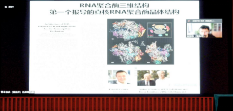 张余首先为同学们讲述了细菌转录因子、细菌终止因子、RNA聚合酶三维结构的发现与DNA转录研究的相关历史,然后以中心法则为起始点,以细菌为主要对象,为同学们讲解了转录分子机制与调控的全过程。通过举例重点介绍执行转录过程的分子机制,详细阐述了转录过程的各个阶段,以及起始、延伸和终止阶段的相关分子结构特征和调控机制。
