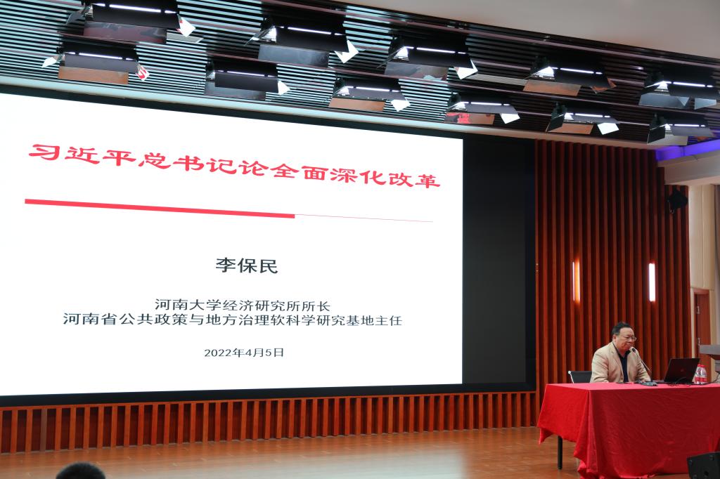 李保民从全面深化改革以来的成效入手,结合丰富实例和详实数据层层递进,讲述了取得这些成果的客观必然性,并带领师生回顾和学习习近平总书记关于全面深化改革的重要论述,深入领会治国理政新理念、新思想、新战略。李保民通过系统讲述了新时代为什么要全面深化改革、新时代如何全面深化改革、如何推动改革取得更大突破、展现更大作为,指出我国经济社会快速发展靠的就是坚持不懈推进改革开放,坚持一切从实际出发,以“我”为主,该改的坚决改,不能改的坚决守住,牢牢把握改革的领导权和主动权。目前国际环境日趋复杂,不稳定性、不确定性明显增加,面对新形势新任务,把我国建成富强民主文明和谐美丽的社会主义现代化强国、实现中华民族伟大复兴的中国梦,必须在新的历史起点上推进以自主创新和供给侧结构性改革为核心的全面深化改革。