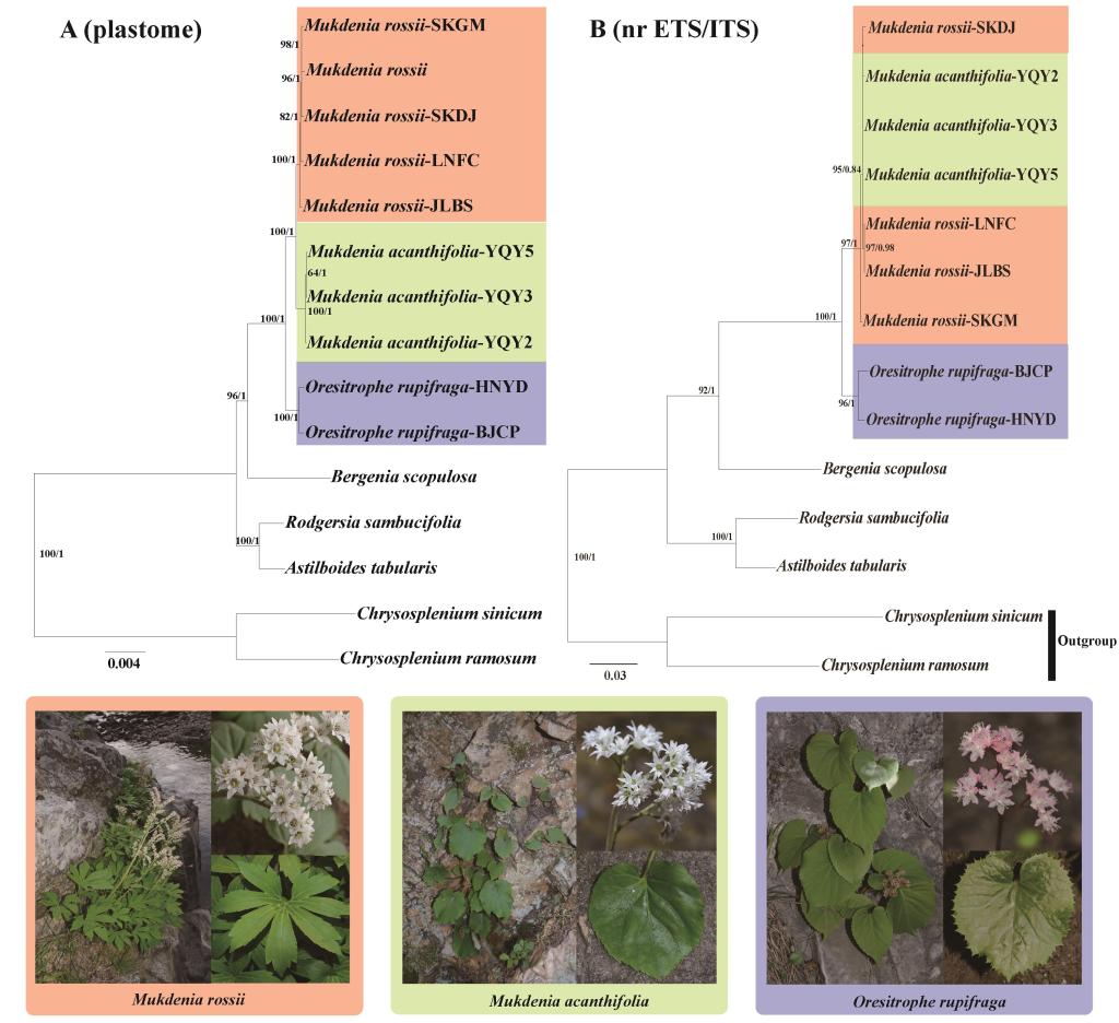 2022年3月22日,必赢76net线路官网青年教师刘路贤副教授在Journal of Systematics and Evolution(中科院一区TOP,IF2021=4.098)期刊在线发表题为“Systematics of Mukdenia and Oresitrophe (Saxifragaceae): Insights from genome skimming data”的最新研究成果,确定了岩槭叶草在虎耳草科的系统分类地位。