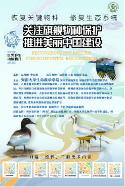 活动期间,必赢官网师生展示张贴中国野生动物保护协会发往必赢官网协助宣传的全国统一海报外,还重点展示并张贴了自制海报。自制海报结合河南尤其开封黄河水域物种分布实际,围绕本次“世界野生动植物日”全球主题和我国主题而设计制作,通过自制二维码的形式将开封周边尤其黄河水域旗舰物种、所学知识和生物多样性保护理念以及黄河流域生态保护意识等有机融入。海报设计精美,理念新颖,参加活动的开封市各县区的野生动植物保护行政主管部门工作人员对海报交口称赞,并纷纷索取用于返回县区后张贴宣传用。