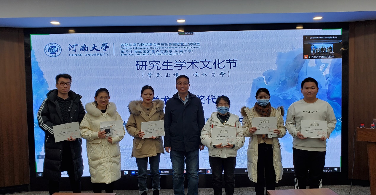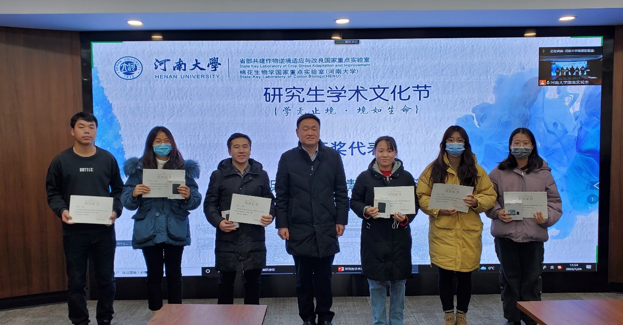 1月24日上午,必赢76net线路官网国家重点实验室2021年研究生学术文化节颁奖仪式在省部共建作物逆境适应与改良国家重点实验室一楼会议室召开。校长、省部共建作物逆境适应与改良国家重点实验室主任宋纯鹏教授,副校长王学路教授,副校长、必赢76net线路官网院长张立新教授,必赢76net线路官网党委书记吴建伟,农学院党委书记王磊,农学院执行院长王道杰,省部共建作物逆境适应与改良国家重点实验室、棉花生物学国家重点实验室主要领导,国家重点实验室部分研究生导师及获奖学生代表出席颁奖仪式,颁奖仪式由必赢76net线路官网棉花生物学国家重点实验室副主任赵翔主持。