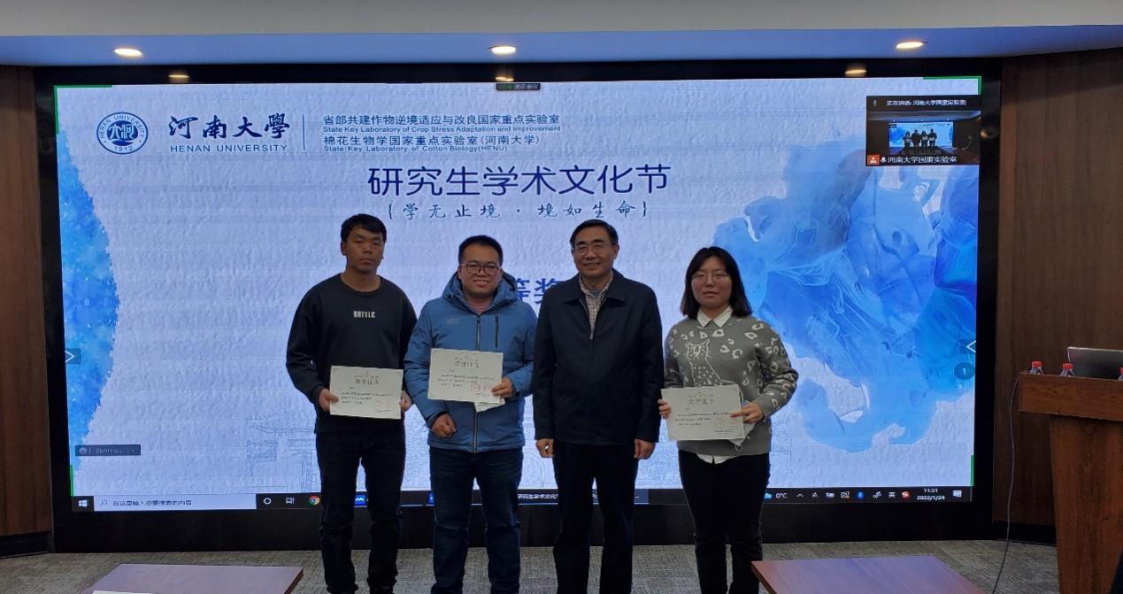 省部共建作物逆境适应与改良国家重点实验室/必赢76net线路官网棉花生物学国家重点实验室常务副主任安国勇教授介绍了本次研究生学术文化节活动情况,宣读了部分获奖名单。随后,宋纯鹏、王学路、张立新分别为学术文化节评比特等奖、优秀论文奖、一等奖获奖代表颁奖。吴建伟、王磊、王道杰为学术文化节评比二等奖和三等奖获奖代表颁奖。特等奖获奖学生李祖亮和乔鑫代表获奖研究生发言。