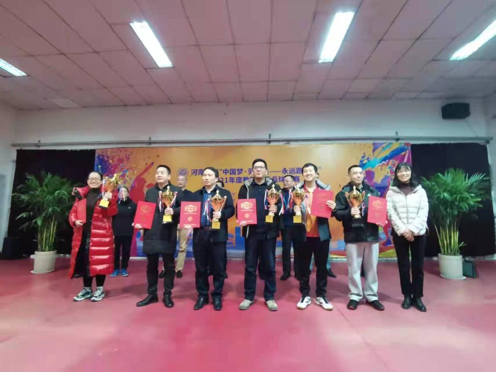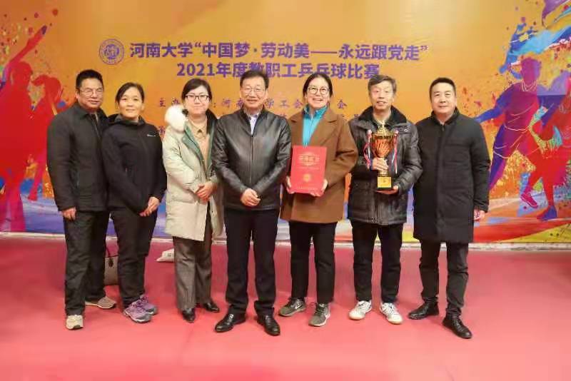 12月30日,必赢76net线路官网“中国梦·劳动美——永远跟党走”2021年度教职工乒乓球比赛落下帷幕,必赢76net线路官网代表队经过三个阶段的比赛,最终获得三等奖。校党委副书记张宝明出席闭幕式并为学院颁奖,学院党委书记吴建伟代表学院领取奖杯。