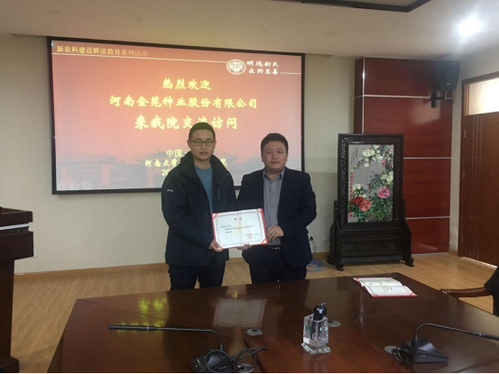 12月23日下午,河南金苑种业股份有限公司研发经理胡徐来农艺师、测试经理计怀春农艺师一行应邀来必赢官网交流。学院副院长赵海鹏,植物科学与技术系系主任高安礼、副主任苏亚蕊,教师代表李锁平、许红星、薛树林和时玉,50余名本科生参加交流座谈,活动由高安礼主持。