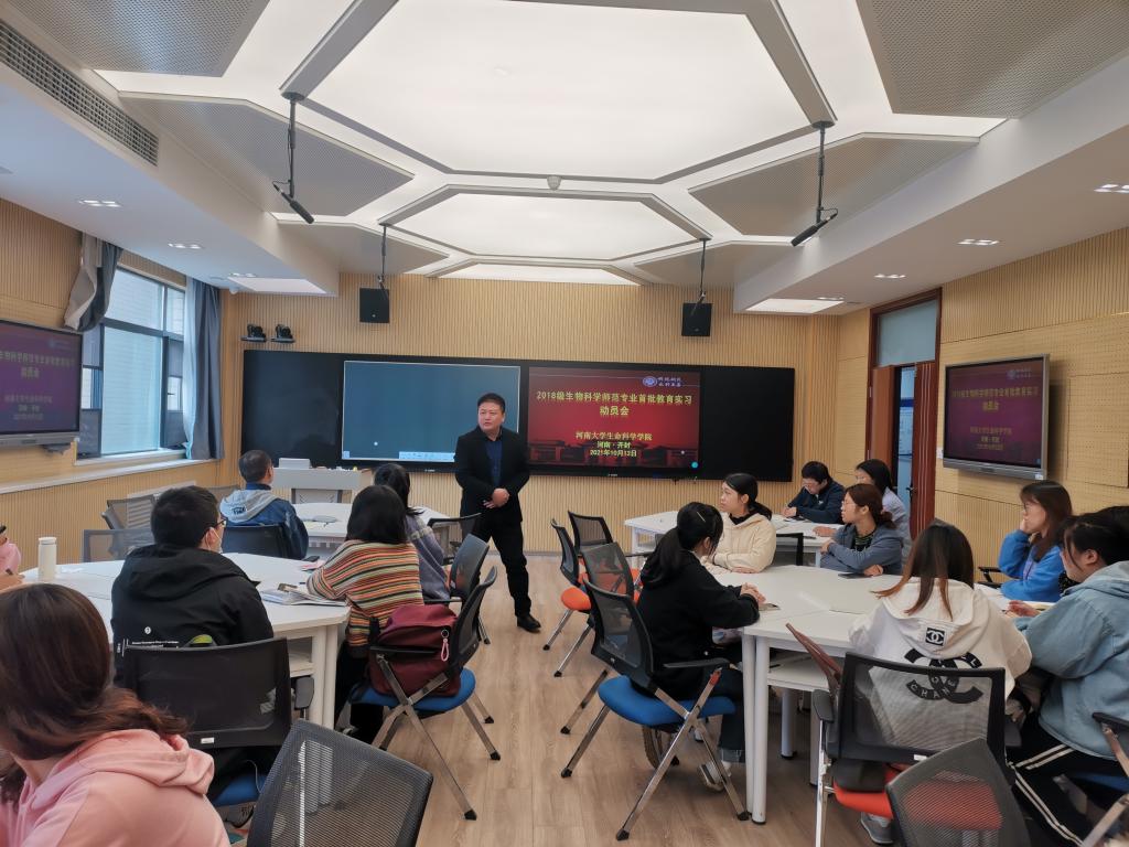 10月12日上午,2018级生物科学(师范)专业首批教育实习动员会于学院智慧教室举行,学院副院长赵海鹏,生物科学系主任刘凌云,副主任、实习队长肖保林,2018级辅导员李靖宇,全体实习学生参加会议,会议由刘凌云主持。