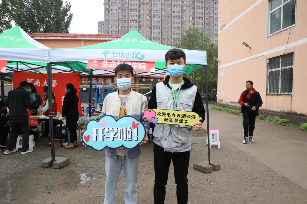 为确保本次迎新工作顺利进行,根据学校疫情防控要求,学院高度重视,精心组织。10月7日,学院办公楼悬挂“今朝乘风破浪,学无止境,勇攀生命科学高峰;明日笃行致远,追求卓越,尽展一流学科风采”的条幅,楼前彩旗飘飘,“欢迎回家”的大型展板格外醒目,金明校区大西门和北苑学生公寓迎新站点布置完毕,拉开了迎新的序幕。