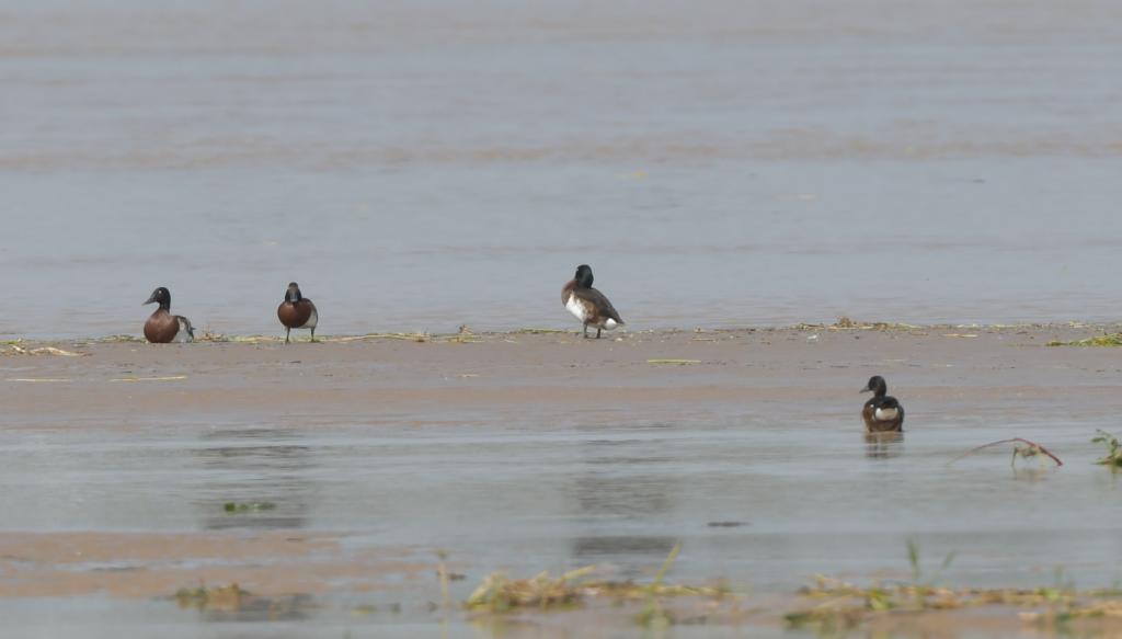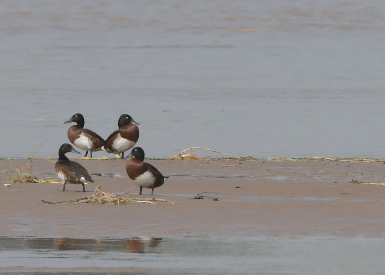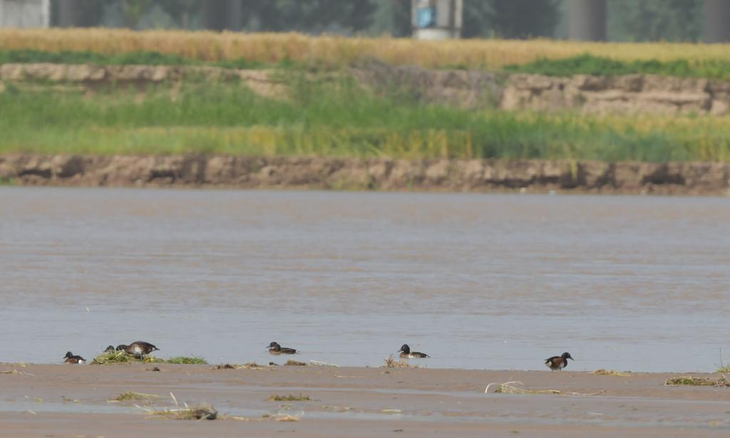 关注黄河流域生态保护和高质量发展我们在行动!2021年5月22、23日,必赢官网学子在开封黄河湿地进行动物资源调查时,连续两次在河南开封柳园口湿地省级自然保护区辖区内的黄河干流滩地观测到极危物种、国家一级保护野生动物青头潜鸭(Aythya baeri)17只。生物科学专业18级王鹏、20级刘雪燕、高悦和19级卓越农林人才计划“春桐班”朱灵君、学科教学(生物)2020级专业硕士李金赫等同学参与调查,调查由必赢官网赵海鹏副教授带队。调查数据采用高倍望远镜分区指数法获取,准确可靠,同时用高清数码相机进行了拍摄记录。