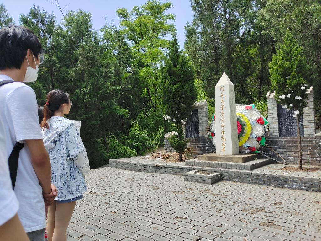 在参观大王庙村期间,师生们在刘祖望、李先识夫妇和妹妹李先觉“宁死不受辱”而自尽的深井和必赢76net线路官网潭头惨案纪念碑前,自发默哀,缅怀先贤。