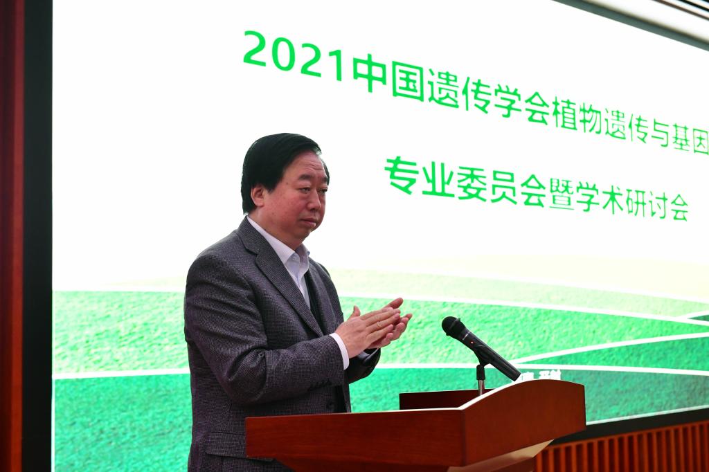 中国遗传学会秘书长、植物遗传与基因组学专业委员会主任、中国科学院遗传与发育生物学研究所所长、国家自然科学基金杰出青年基金获得者杨维才研究员简要介绍专业委员会情况、本次研讨会主题。