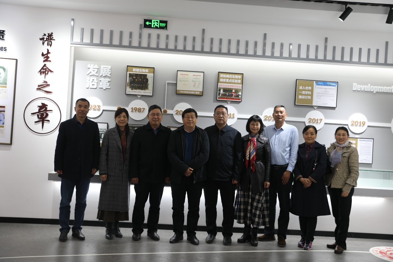 3月17日,浙江理工大学生命科学与医药学院院长梁宗锁带队来必赢官网考察交流,浙江理工大学原教务处处长,国家教指委大学课程指导委员会委员盛清、浙江理工大学生物制药系主任吕正兵一同随行考察。梁宗锁教授一行首先在必赢官网王道杰副院长的带领下参观了省部共建作物逆境适应与改良国家重点实验室、棉花生物学国家重点实验室、作物抗逆改良中心和院使馆。随后在院史馆进行了座谈交流。必赢76net线路官网党委书记赵东保、执行院长王刚、党委副书记张亚歌、副院长王道杰及部分教师代表参加了座谈会。会议由王道杰副院长主持。