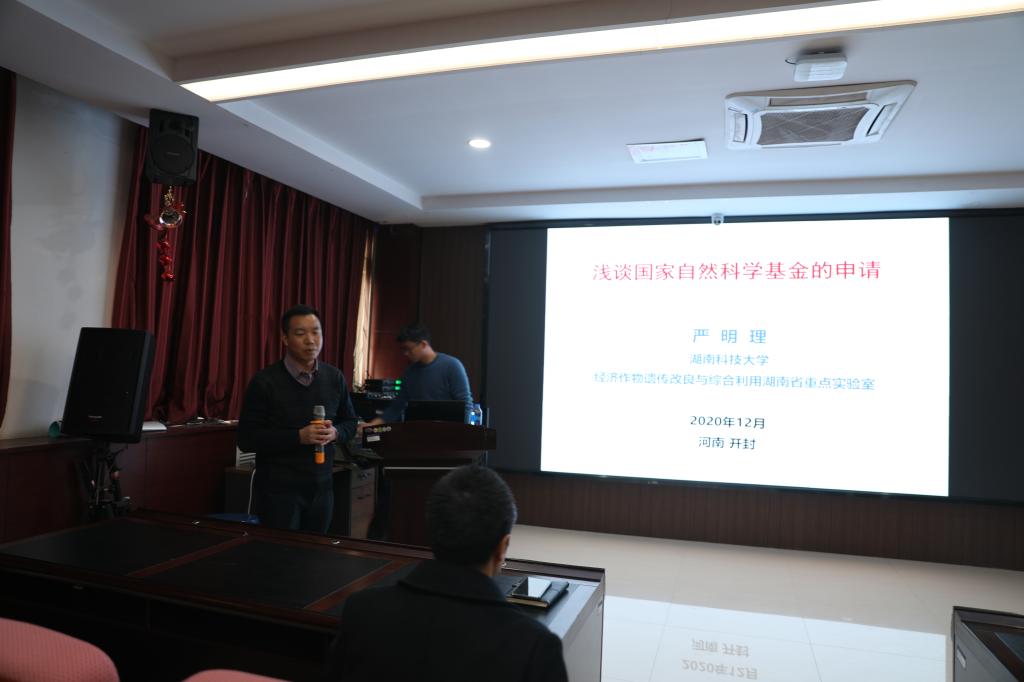 严明理教授作了“浅谈国家自然科学基金的申请”的主题报告。严教授从申请者、网评专家及会评专家等不同视角,结合个人体会,对申报书的选题、研究内容及创新性、研究方案、研究基础等方面详细讲解了国家自然科学基金项目申请的经验与要点,指出了基金申请书撰写过程中存在的常见问题,并给予相应建议与对策。报告结束后与老师们进行了互动交流,就项目申报过程中存在的问题进行了详细讲解和答复。
