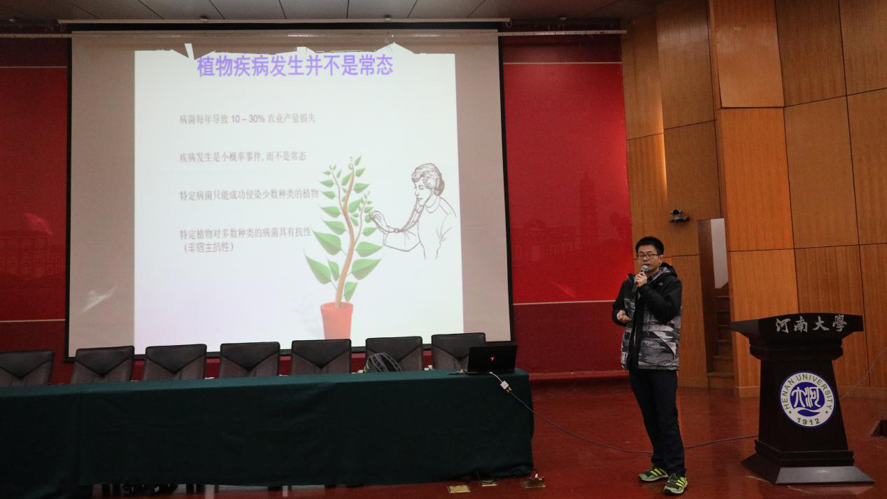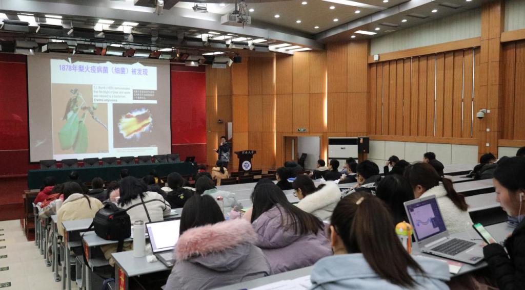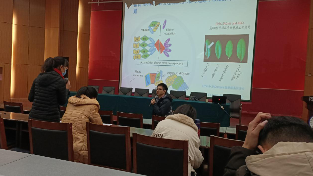 万里教授分别从植物免疫系统的概述和自己研究领域的新进展两部分来讲述,并举例介绍了植物与微生物互作及抗病机理、植物疾病发生条件及细菌如何实现致病性等内容。万里教授扎实的科研功底、丰富的理论知识和精彩的学术演讲赢得了在场所有同学的掌声。报告会结束以后,万里教授和在场师生进行了学术交流,学术氛围十分浓厚。