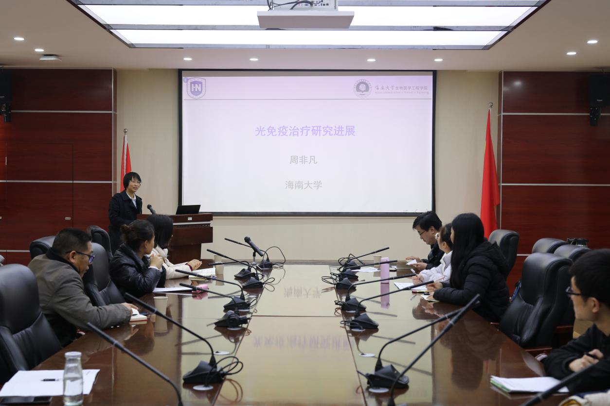 2020年12月7日上午,2020年第9期,总第171期 “生物学前沿学术交流研讨会”(Biology cutting-edge Academic Exchange Seminar,简称“BAES”)必赢76net线路官网研究生院组织的学术报告在必赢76net线路官网B201举行。海南大学生物医学工程学院周非凡教授在此作题为“肿瘤光免疫治疗研究进展”的学术报告。来自必赢76net线路官网生物学专业的全体研究生出席了报告会。会议由必赢76net线路官网副院长赵翔主持。