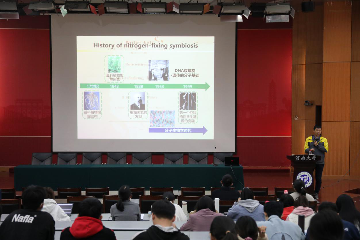 开场,王二涛为必赢官网本科生和研究生就如何在校期间快速明确学习目标给予了指导,提出早制定学习规划的重要性。随后,王二涛围绕植物-微生物共生的机理研究展开讲述,他表示植物和微生物既可以互利共生同时也可能发生寄生危害,通过研究模式植物水稻、苜蓿-菌根真菌共生、豆科植物-根瘤菌共生固氮、环境因子对植物-微生物共生的调控机理,总结阐述了互利共生的三种模式,提出了非豆科植物水稻、玉米和小麦结瘤固氮可行性的研究构想。王二涛教授扎实的科研功底、丰富的理论知识和精彩的学术演讲赢得了在场所有同学的掌声。报告会结束以后,王二涛就在场师生感兴趣的话题进行交流。
