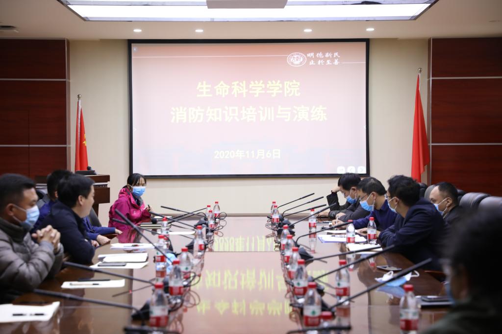 为进一步增强必赢官网师生的消防安全意识,提高师生应对火灾事故的应急处置能力,11月6日下午,必赢76net线路官网在B201会议室举行消防知识培训,并举行了消防演练。开封市消防支队防火监督科科长张四海,必赢76net线路官网保卫处消防科科长马建军、陈兴富及生命科学主要领导、各实验室负责人、安全员、本科生、研究生参加活动。会议由学院副院长臧国轻主持。