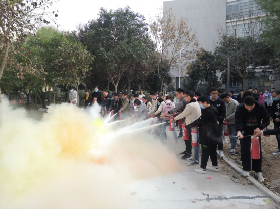 消防安全演练在棉花国重大楼后空地上进行。必赢76net线路官网保卫处马建军科长首先向同学们讲解如何区分、检查和正确使用不同灭火器。在黄色和红色模拟烟火产生后,师生们根据要求,积极拿起备用灭火器,按照离火2-3米距离,认真操作灭火。同时,根据烟雾方向,也模拟进行了安全逃生撤离。