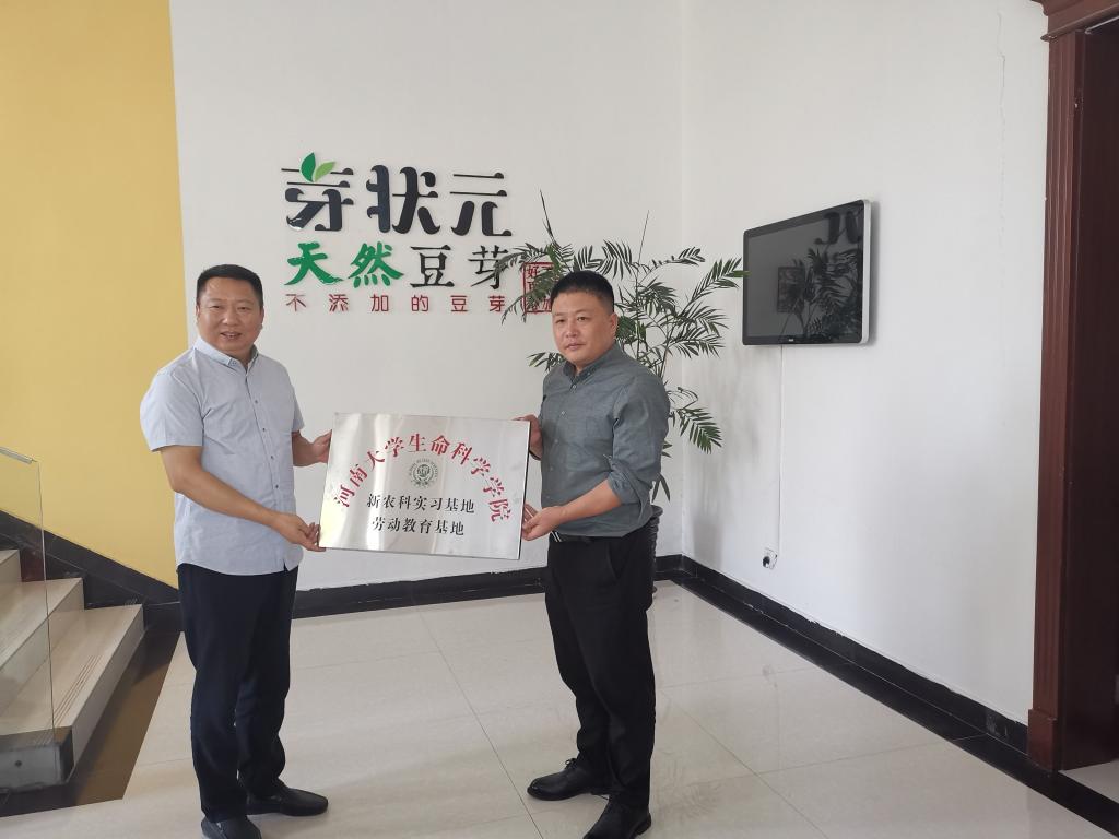 9月11日,在郑州新农村蔬菜食品有限公司“芽状元”荥阳生产基地,赵海鹏代表学院与公司董事长、芽状元联合创始人李银州签署共建新农科专业实习基地(劳动教育基地)协议,并共同为实习基地揭牌。芽状元联合创始人徐二甯,必赢官网植物科学与技术系党支部书记张大乐、系主任高安礼、成人教育办公室主任李黎等出席了仪式。签约授牌结束后,公司安排专人为见习队师生讲解展示了豆芽培育相关的古法器具、古艺流程、古籍记载等,并通过透明车间、视频、图片了解到现代化的生产设备、技艺和芽状元14年来的发展历程、企业荣誉、品牌梦想。同日,见习队伍赶往洛阳明拓生态农业科技发展有限公司(简称明拓农业)学习考察,期间赵海鹏与明拓农业董事长赵海共同为此前已签署协议的必赢76net线路官网-洛阳明托共建新农科专业实习基地揭牌。揭牌仪式上,赵海鹏对明拓农业此前对我校新农科建设的支持表示感谢并指出,基地为农学专业学生提供了一个开拓视野提高实践能力和认识的平台,双方可以优势互补,互相助力;植物科学与技术专业应以农科思维办农科,进一步理解领会新农科建设理念,加强与主管部门,农业企事业单位等合作交流,了解行业发展和社会需求,切实提高农科人才培养质量。赵海对必赢76net线路官网在明拓农业建立实习基地表示欢迎和感谢,认为该实习基地的建立,对提高公司的科研水平,增强企业的核心竞争力将会起到积极的促进作用,共同为我省农业高质量发展贡献力量。短暂的揭牌仪式后,根据明拓农业的安排,见习队伍对公司进行全面考察学习并和公司技术人员进行交流;公司董事长、河南省劳动模范赵海为同学们做了题为“明拓农业的发展历程及对现代农业思考”的报告。