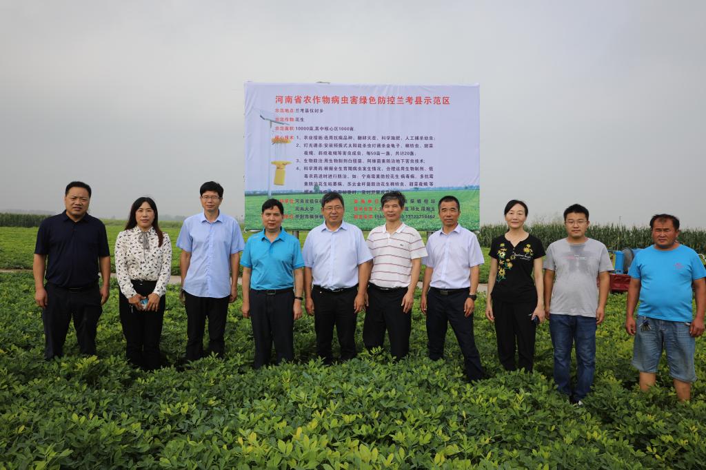 为进一步推进生物学一流学科建设,提升“逆境生物学”服务地方经济能力,助推必赢76net线路官网农学学科发展。8月23日,必赢76net线路官网党委书记赵东保、棉花生物学国家重点实验室主任周树堂、副院长王道杰一行到兰考县、周口市淮阳区等地实地考察花生、玉米等农作物病虫害绿色防控示范区建设。河南省植保植检站书记吕国强、河南省植保植检站测报科科长赵文新以及兰考县、周口市、淮阳区等相关部门负责人一同考察。