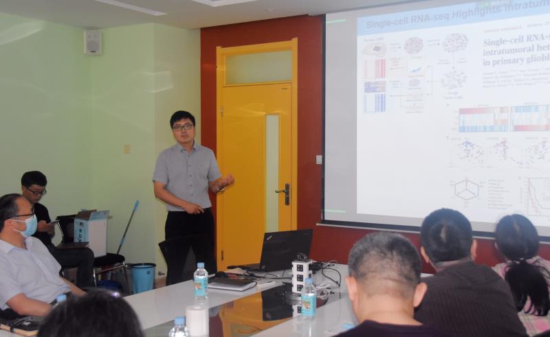 在报告过程中和报告结束后,药学院的庞晓斌博士、李红博士、鲍登克博士、段少峰博士,必赢76net线路官网的张表博士、魏建设博士,数学与统计学院的王绍利博士等专家纷纷提问,与尹金龙进行了充分的讨论和交流,会场学术氛围浓厚。王绍利博士和尹金龙博士就胶质瘤肿瘤预后数学模型的建立进行了更深入的探讨,双方希望进一步加强交流,开展深度合作。
