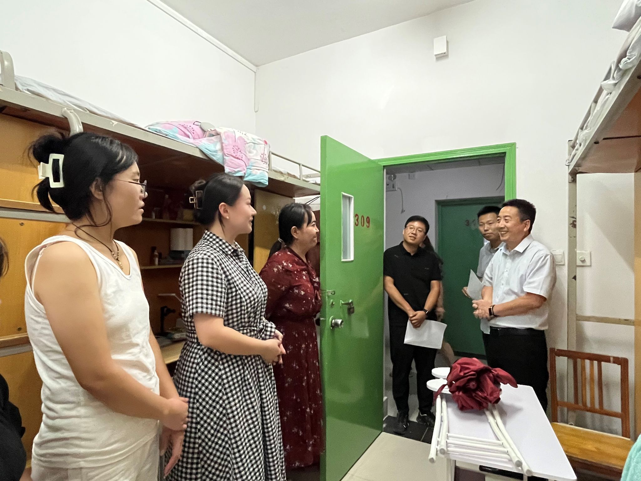 9月7日下午,学院党委书记吴建伟带领学院领导班子、学工队伍到研组团公寓看望研究生新生。在学生宿舍内,老师们对新生的各方面情况进行了详细询问,了解入学情况。“你们都是从哪里过来的?”“到校之后是否适应这里的气候环境?”“对接下来的科研生活有什么疑惑吗?”……在与新生面对面交谈中,吴建伟代表学院对新生的到来表示热烈欢迎,希望同学们尽快熟悉环境,适应即将到来的科研节奏,跟随导师学习科研技能,叮嘱同学们注意劳逸结合,加强身体锻炼,为更好的攀登科研高峰打下坚实基础。